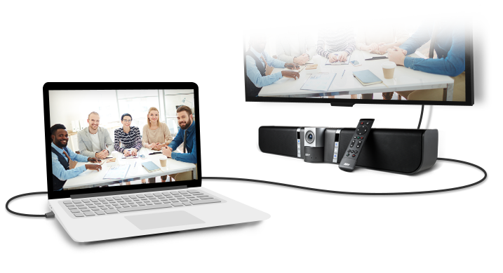 Les caméras et les téléphones à haut-parleur de conférence USB d'AVer sont faciles à utiliser ; ils sont compatibles avec la plupart des plateformes de conférence, comme BlueJeans, Google Hangouts ou Skype.